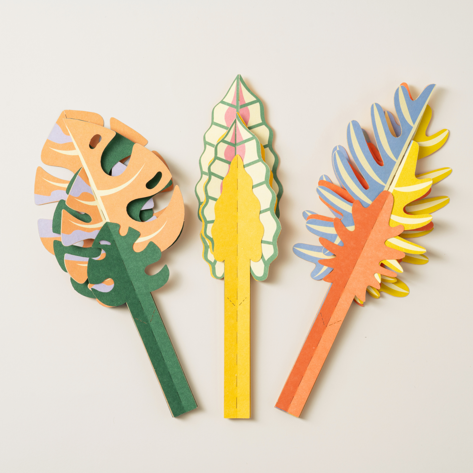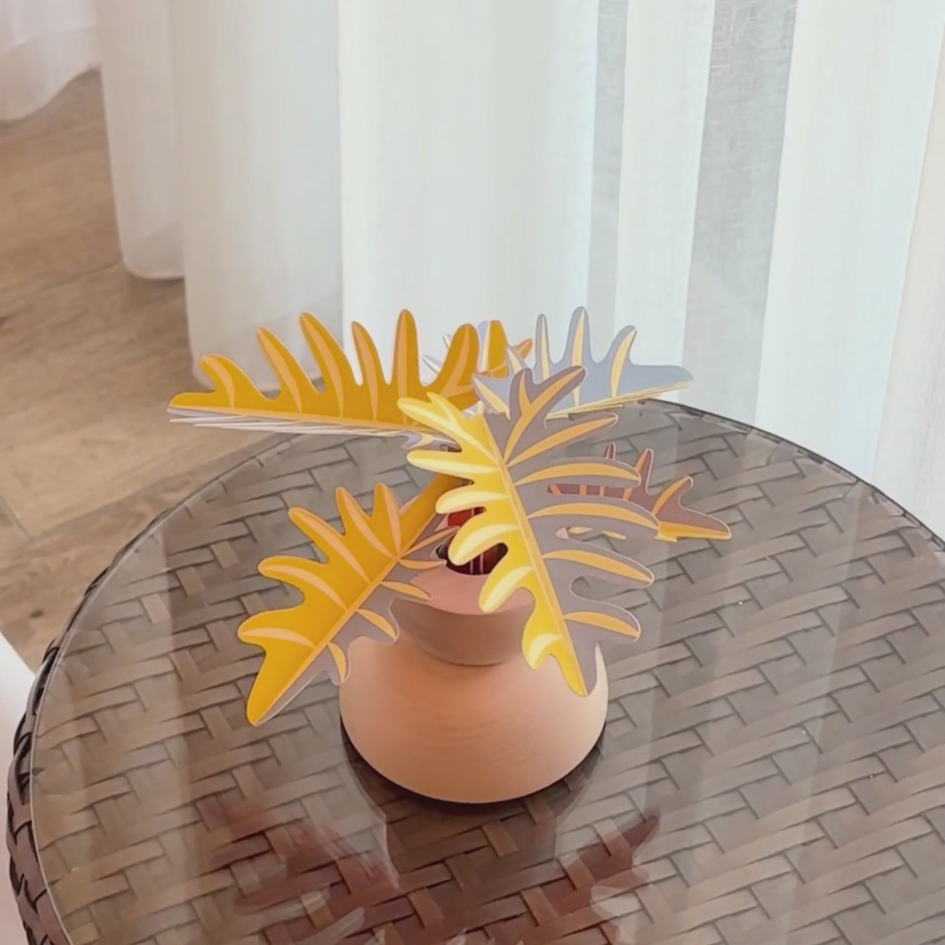 熱帶闊葉造型,色彩繽紛如森林秘境,象徵療癒與希望。